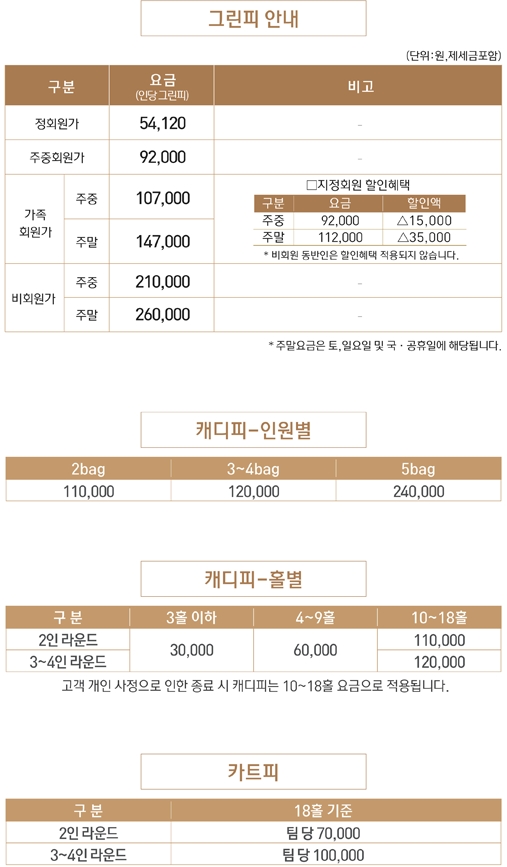 ▣ 오크힐스cc 골프 그린피 및 이용요금 안내 ▣