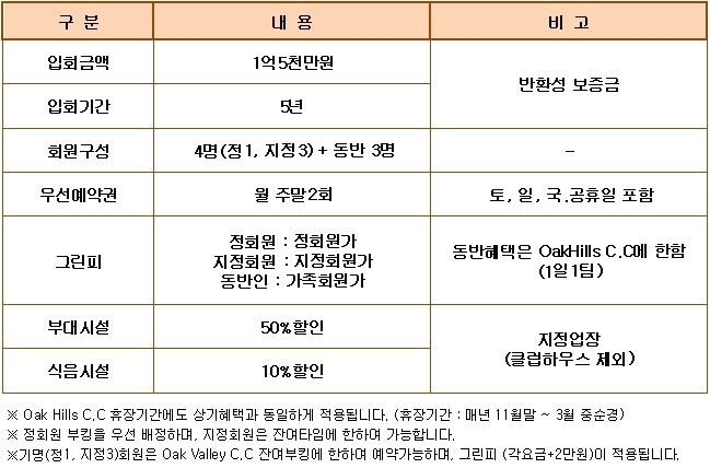 ■ 2021년 오크힐스cc 동반무기명회원권 분양 안내 ■