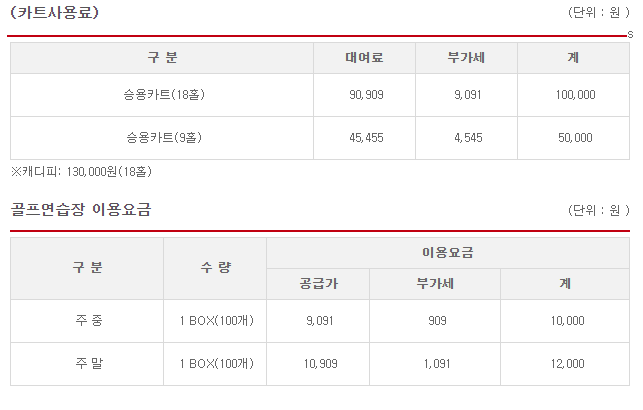 ◆ 발리오스cc 이용요금 및 예약 안내 ◆