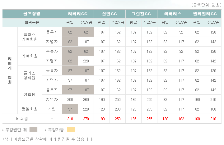 ■ 리베라cc 이용요금 및 예약 안내 ■