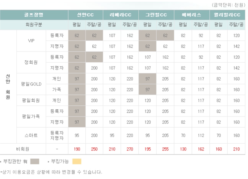 ◐ 신안cc 이용요금 안내