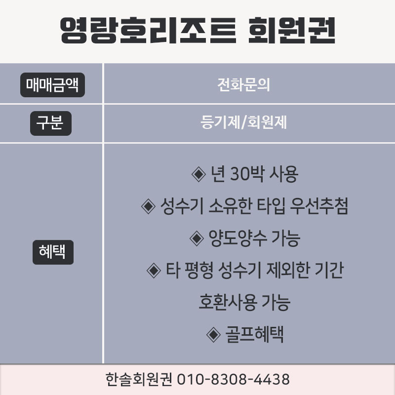 바랍니다. 영랑호리조트의 회원권은 등기제회원권과 회원제회원권으로 나뉘어져 있으며