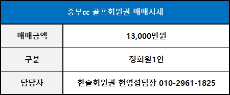 ◀ 중부cc 골프회원권 매매가격 ▶