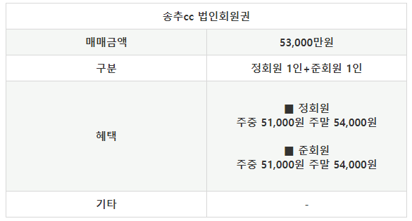 송추cc의 회원권은 법인회원권으로 정회원 1인과 준회원 1인으로