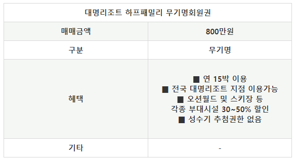 ◆ 대명리조트 하프패밀리 회원권 혜택과 정보 안내드립니다. ◆