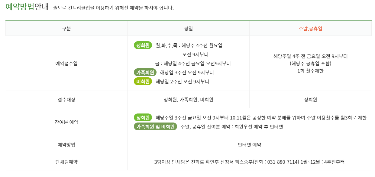 회원의 날 : 매월 2,4,5주 일요일 및 1주 토요일