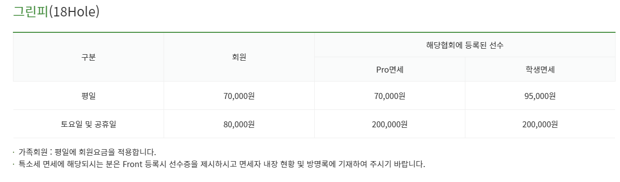 ◈ 솔모로cc 이용요금 및 예약 안내 ◈