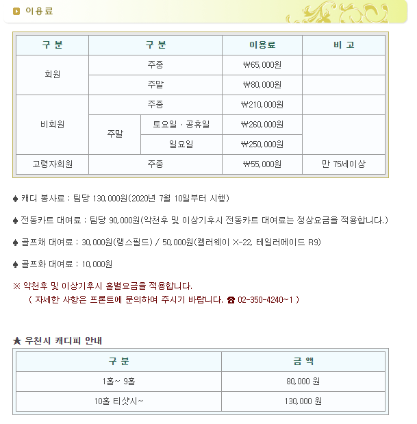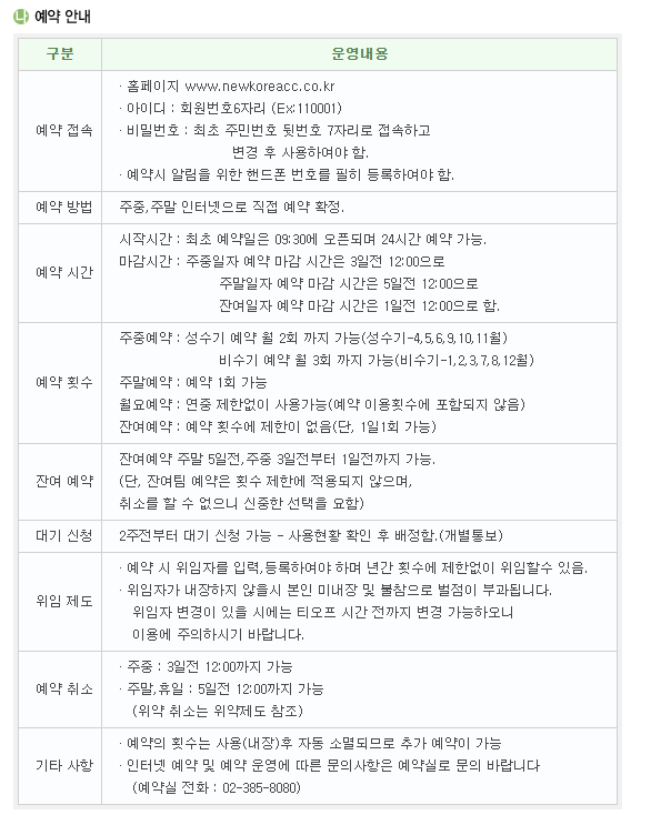 ◆ 뉴코리아cc 이용요금 및 예약 안내 ◆