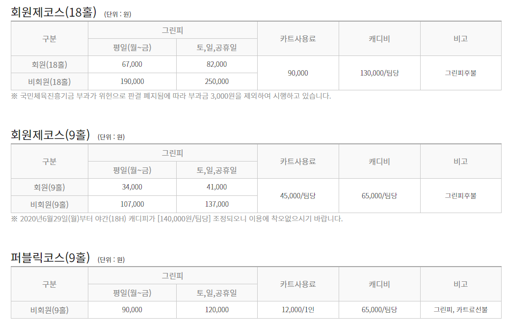 ▣ 태광cc 이용요금 및 예약 안내 ▣