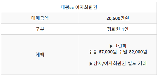 오늘 알아볼 태광cc의 회원권은 여자회원권으로