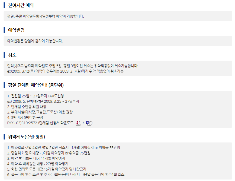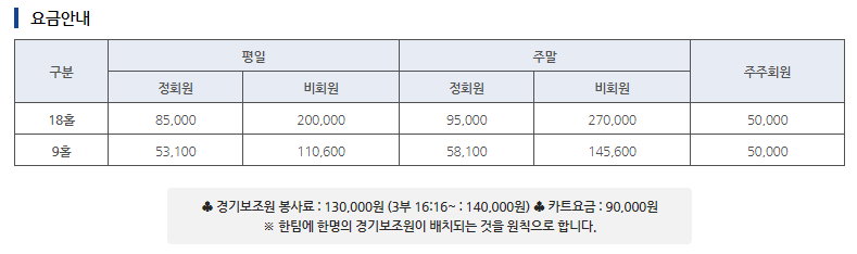 ◆ 코리아cc 이용요금 및 예약 안내