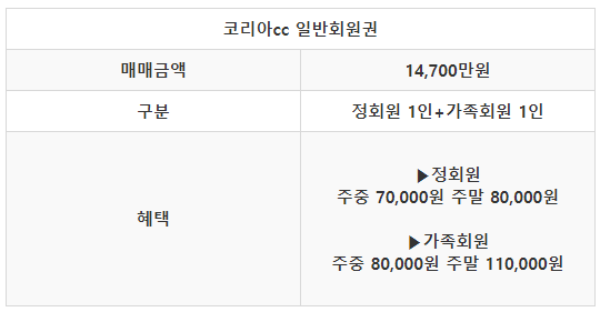 ◆ 코리아cc 회원권 안내