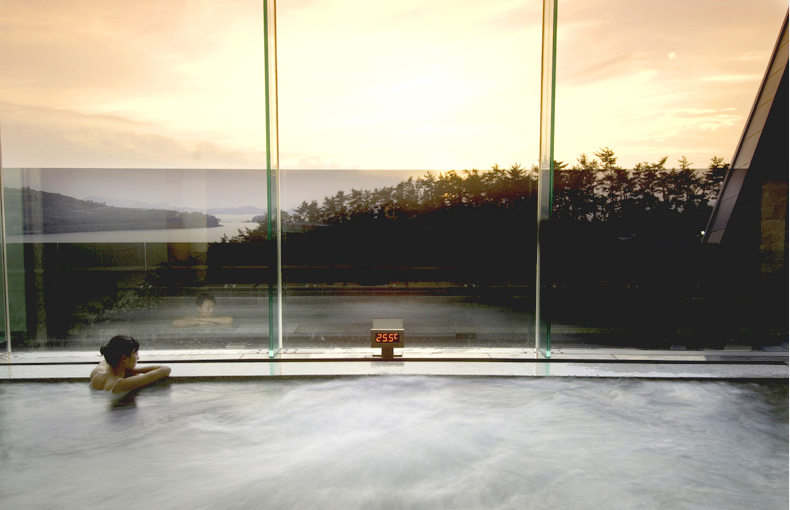 아름다운 남해를 배경으로 아름다운 자연경관을 바라보며 휴식을 취할 수 있다는