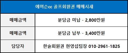☞ 진천에머슨cc회원권은 분담금이 납부된 회원권과 미납된 회원권으로 구분되어 거래됩니다.