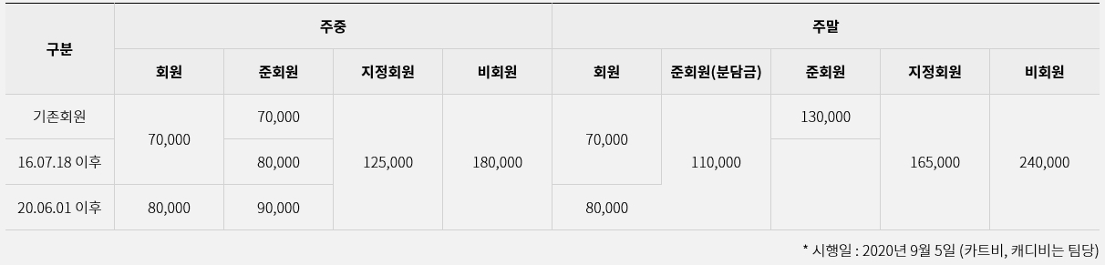 - 분담금 납부 : 정회원1인 + 가족회원1인 + 지정회원2인