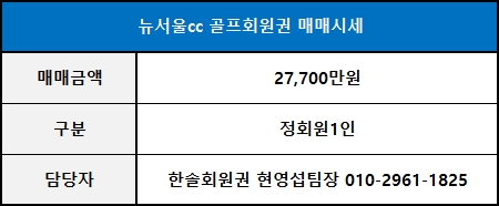 ■ 뉴서울cc 골프회원권 추천매물 안내 ■
