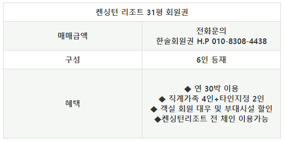 ◈ 켄싱턴리조트 회원권 안내 ◈