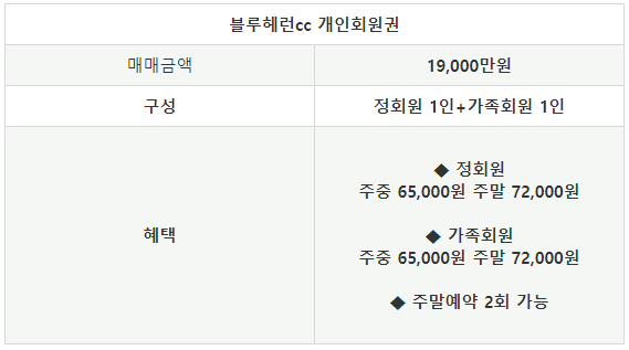 블루헤런cc회원권 혜택과 정보 안내
