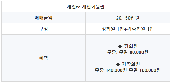 제일cc의 회원권은 개인회원권으로 정회원 1인과 가족회원 1인으로