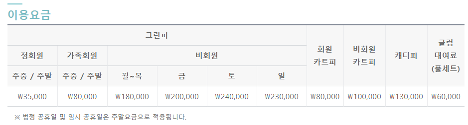 ◈ 샌드파인cc 이용요금 및 예약 안내 ◈
