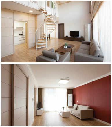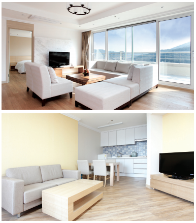 18평, 27평, 60평형이 있습니다. 제주, 설악, 통영, 화순 등 체인에 따라