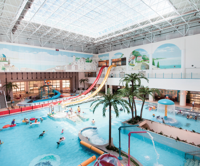 부대시설 : 워터파크, 노천온천, 야외수영장, 키즈풀, 파도풀 등등