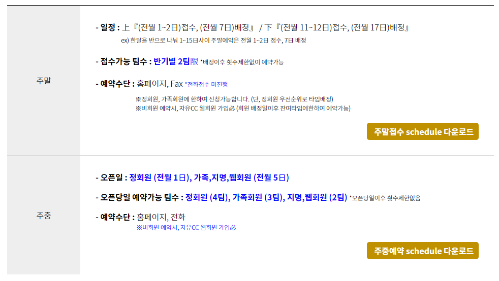 ■ 자유cc 이용요금 및 예약 안내
