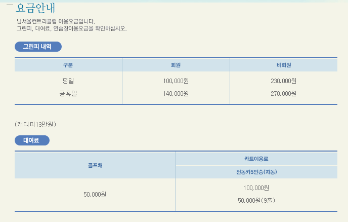 ■ 남서울cc 이용요금 및 예약 안내 ■