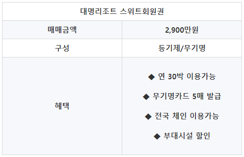 ♣ 대명리조트 스위트회원권 혜택과 정보 안내드립니다. ♣