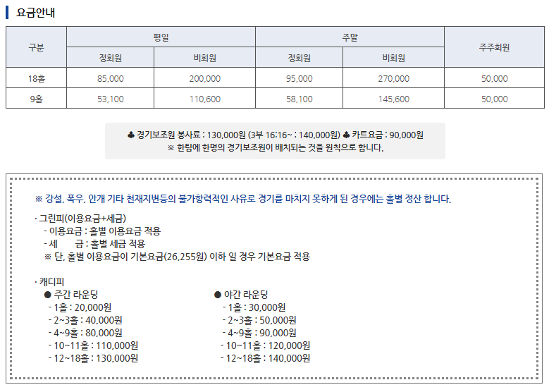 ◆ 코리아cc 이용요금 및 예약 안내 ◆