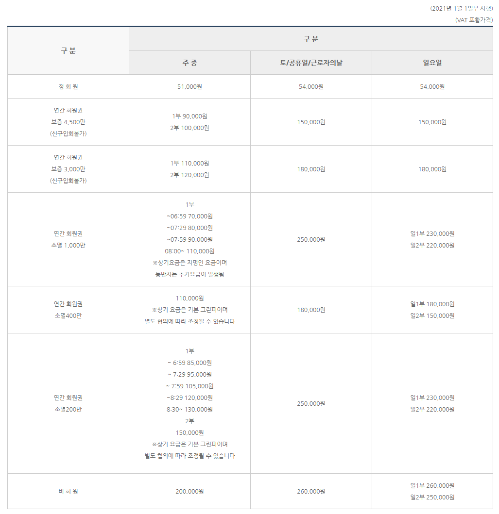 가족회원 1인으로 구성되어 있습니다. 주말 부킹이 2회가 보장된다는 특징이 있는