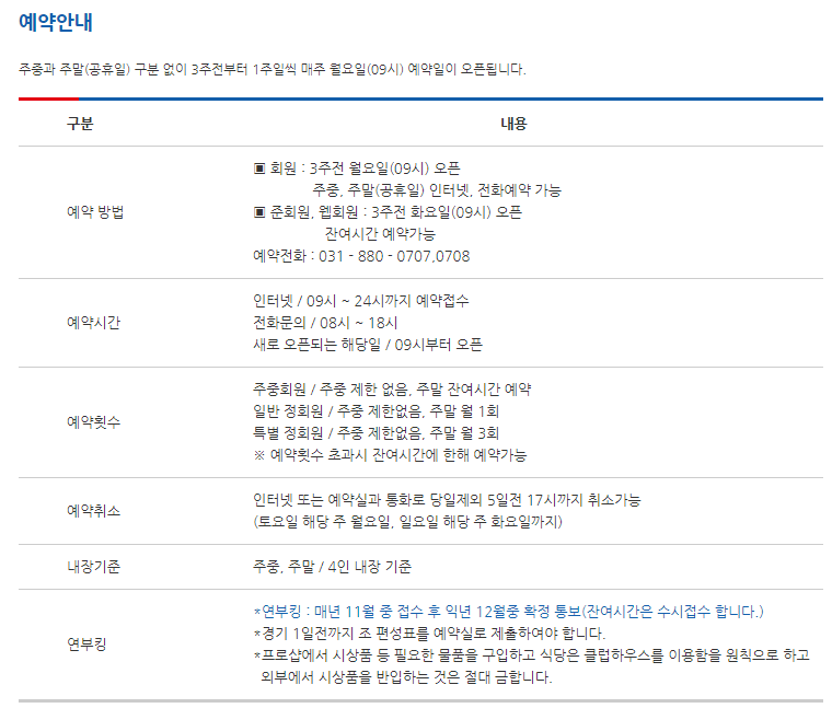 정기휴장일 : 동계휴장 (홈페이지 공지)