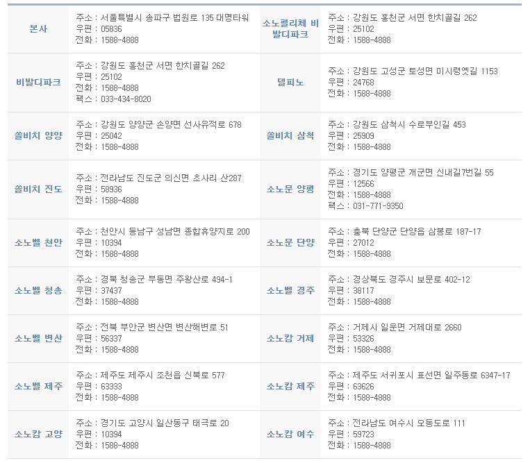 운영체인 : 비발디파크, 델피노, 양평, 단양, 천안, 쏠비치,