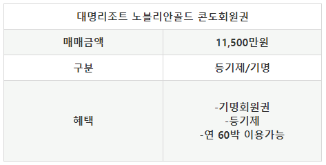 대명리조트 노블리안골드 콘도회원권 혜택과 정보 안내