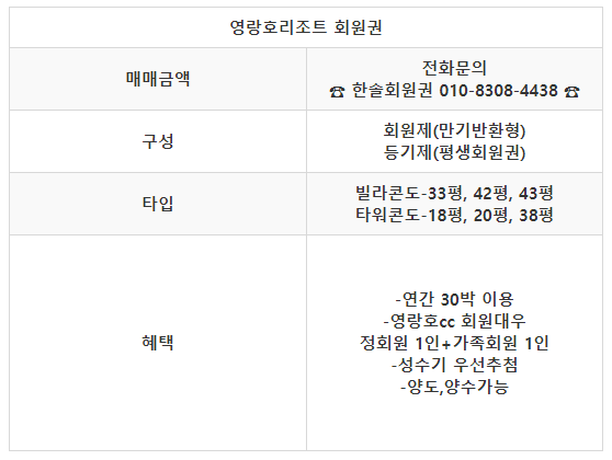 ■ 영랑호리조트회원권 혜택과 정보 안내드립니다. ■