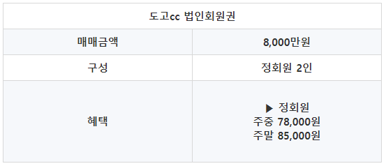 오늘 알아볼 도고cc의 회원권은 법인회원권으로 정회원 2인으로