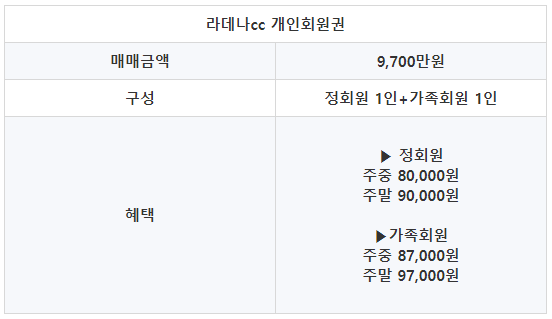 라데나cc의 회원권은 개인회원권으로