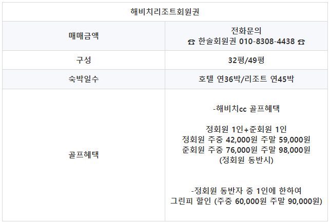 ◆ 해비치호텔리조트 회원권 혜택과 정보 안내드립니다. ◆