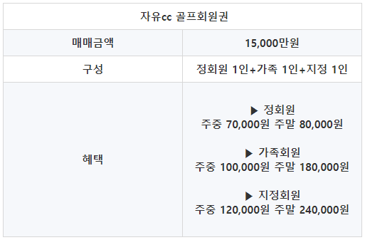 자유cc의 회원권은 정회원 1인과 가족회원 1인,