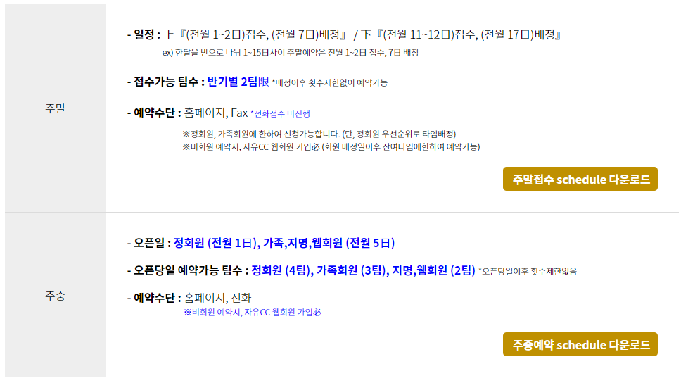 ◇ 자유cc 이용요금 및 예약 안내 ◇