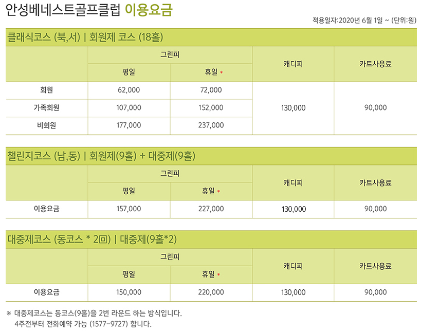 ◇ 안성베네스트cc 이용요금 및 예약 안내