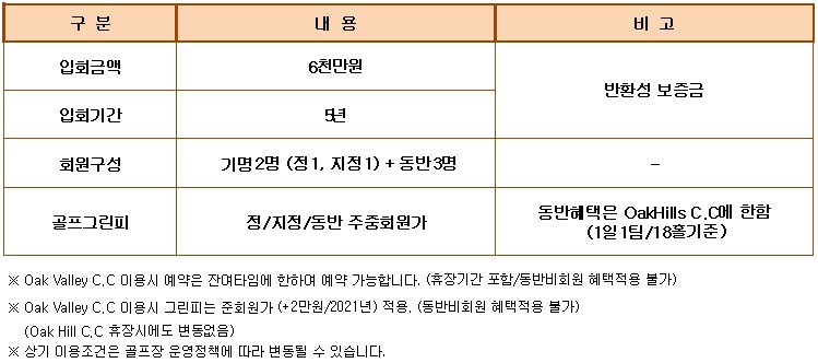 <2021년> HDC 오크힐스cc 주중무기명회원권 분양 안내