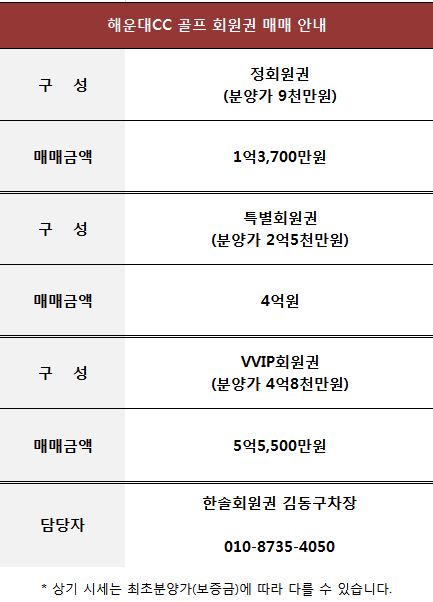 해운대CC 골프 회원권 매매 안내