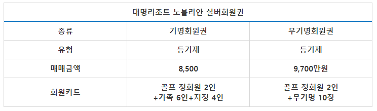 대명리조트의 노블리안 실버회원권은