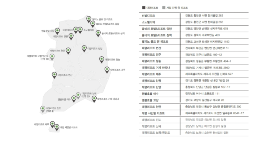 ◆ 대명리조트 전국 운영 체인 안내 ◆