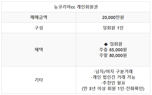 ■ 뉴코리아cc 회원권 안내 ■