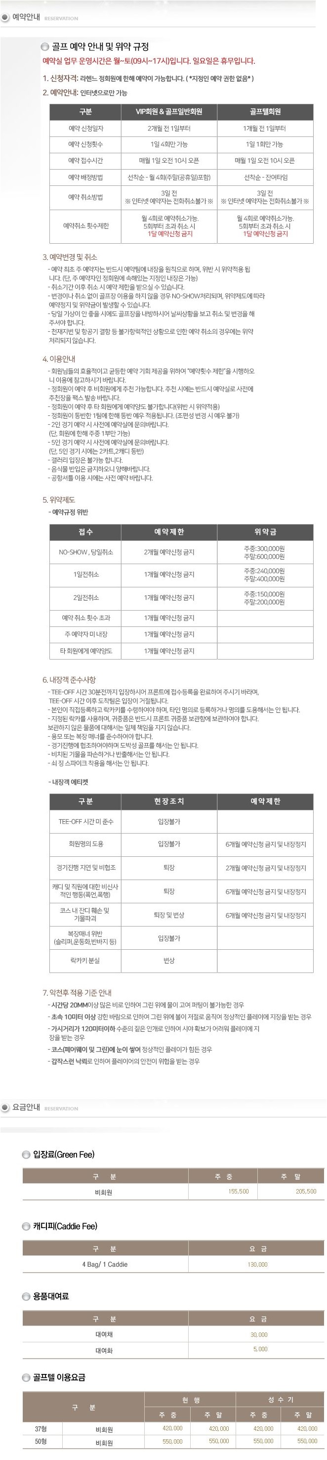 지정회원 그린피 주중 4만원, 주말 비회원 요금