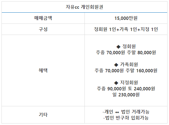 자유cc의 회원권은 개인회원권으로 정회원 1인과