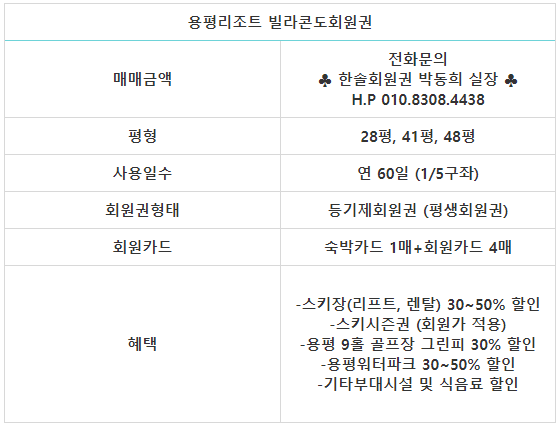 ■ 용평리조트 빌라콘도 회원권 혜택과 정보 안내드립니다. ■