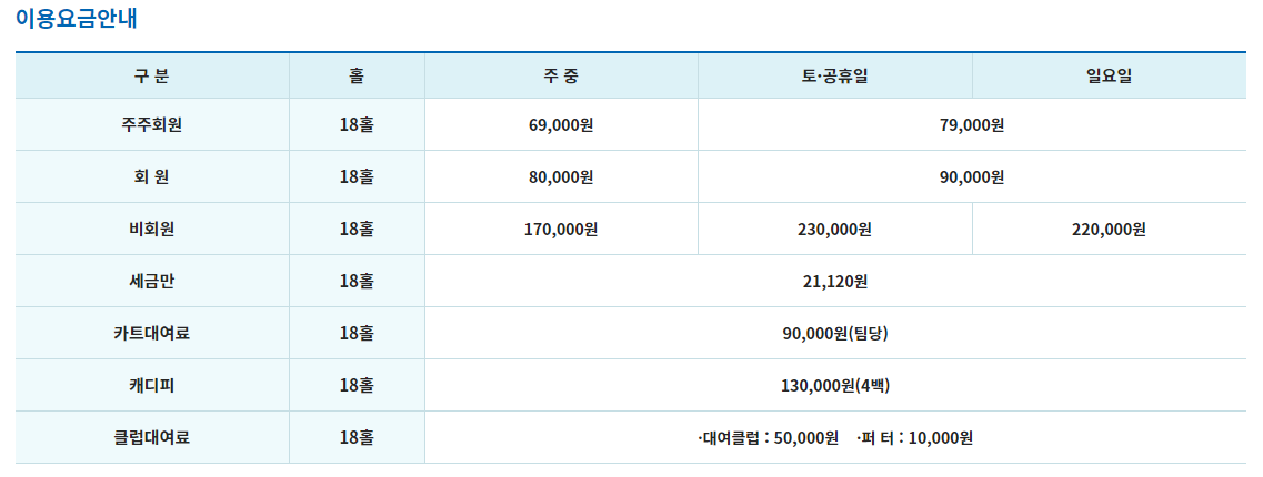 ◆ 여주cc 이용요금 및 예약 안내 ◆
